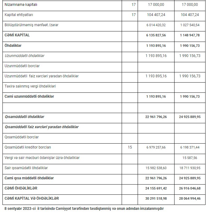2021 və 2022-ci illərin nəticələrinə əsasən xalis mənfəətdən təsisçilərə 4 milyon 774 min 982 manat divident ödənilib.
