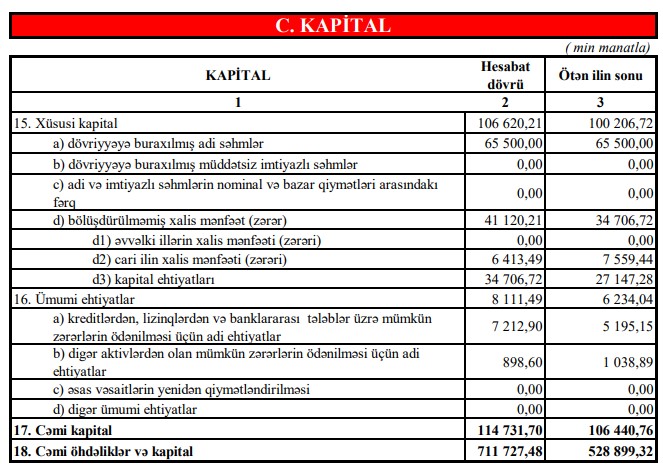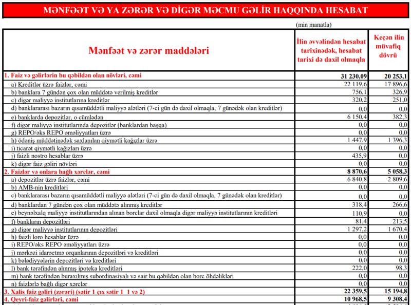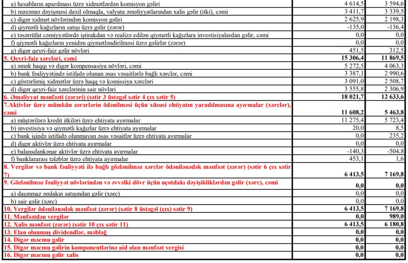 Maliyyə hesabatına əsasən, bank 2023-cü ilin əvvəlindən 6.4 milyon manat xalis mənfəət əldə etmişdir.