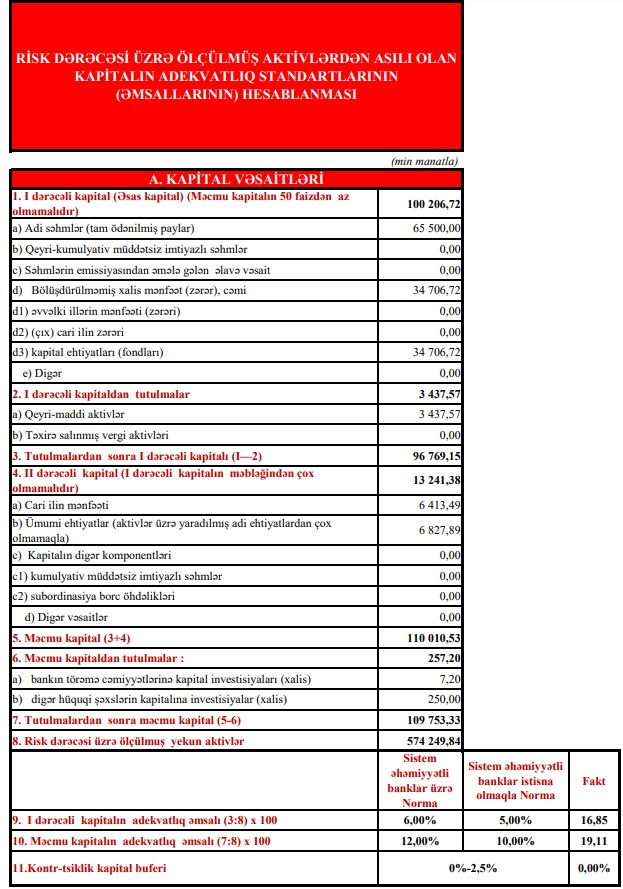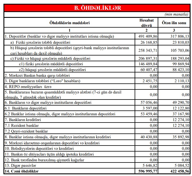 Qeyd edilib ki, bank müştərilərin etimadını qazanmağa davam edib. Fiziki və hüquqi şəxslərin müddətli əmanətlərinin ümumi məbləği ötən ilin müvafiq dövrü ilə müqayisədə 70% artaraq 207 milyon manata çatmışdır. Bankın kredit portfelində də ötən ilin müvafiq dövrü ilə müqayisədə 19,3% artım müşahidə edilib.