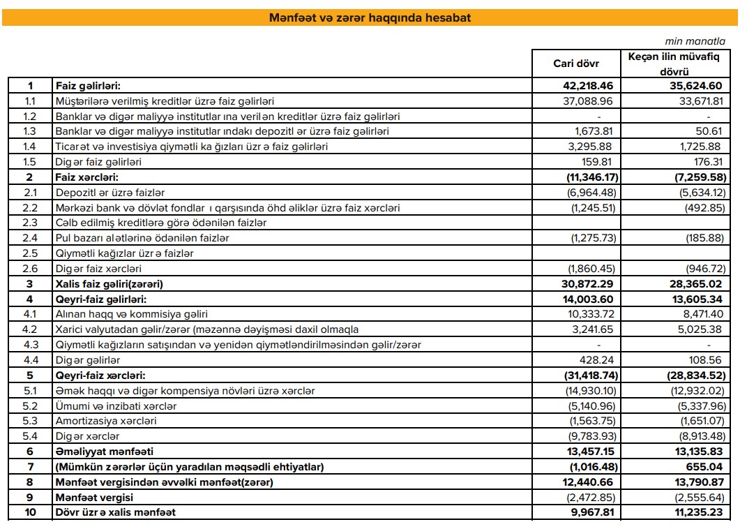 "Expressbank" 9 ayda 10 milyon manata yaxın xalis mənfəət əldə edib