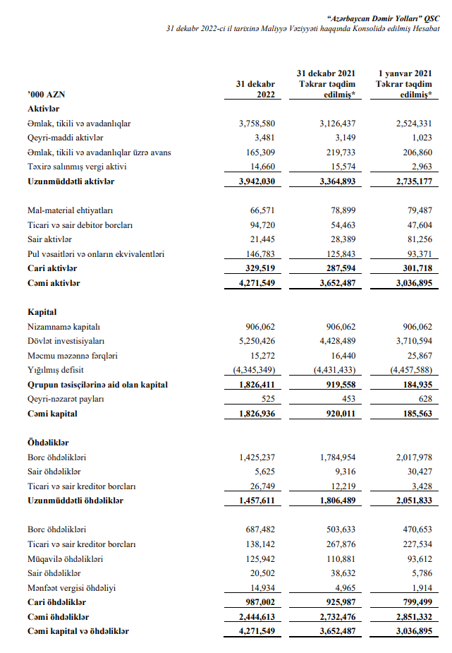31 dekabr 2022-ci il tarixində QSC 4 milyard 271 milyon 549 min manat cəmi aktivlər əmalik olub.