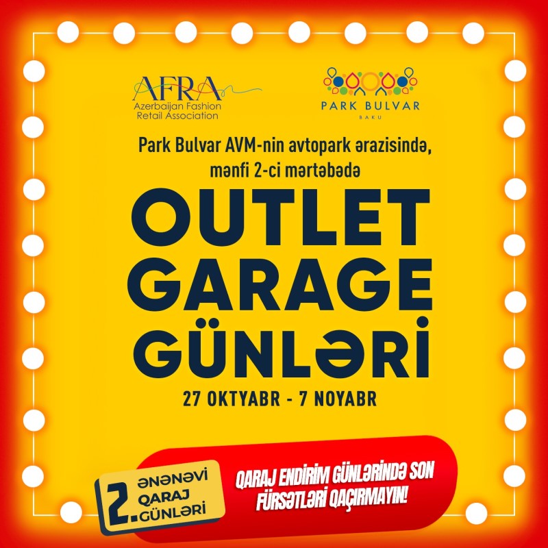 Assosiasiyadan Marja.az-a verilən məlumata görə, “Outlet” biznesinin Azrbaycanda inkişaf etdirmək məqsədi ilə, AFRA və Parkbulvar AVM-in birgə təşkilatçılığı ilə Bakıda növbəti “II Outlet Garage Günləri” keçiriləcək.