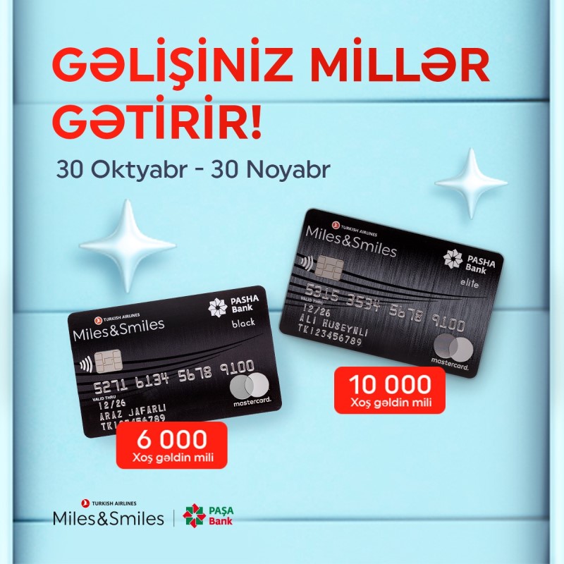 Xatırladaq ki, “Miles&Smiles PAŞA Bank” kartları ölkədə ilk dəfə olaraq “Türk Hava Yolları” aviaşirkəti ilə ko-brendinq məhsulu kimi 2019-cu ildə müştərilərin istifadəsinə verilib. Bu kartlar vasitəsilə ticarət və xidmət obyektlərində ödənişlər həyata keçirərək mil qazanmaq, toplanan milləri “Türk Hava Yolları”nın və “Star Alliance” üzvlərinin 300-dən çox uçuş istiqamətləri üzrə aviabiletə çevirmək mümkündür. Həmçinin “PAŞA Bank”ın partnyor şəbəkəsində ödəniş zamanı müştərilər əlavə millər də qazana bilər.