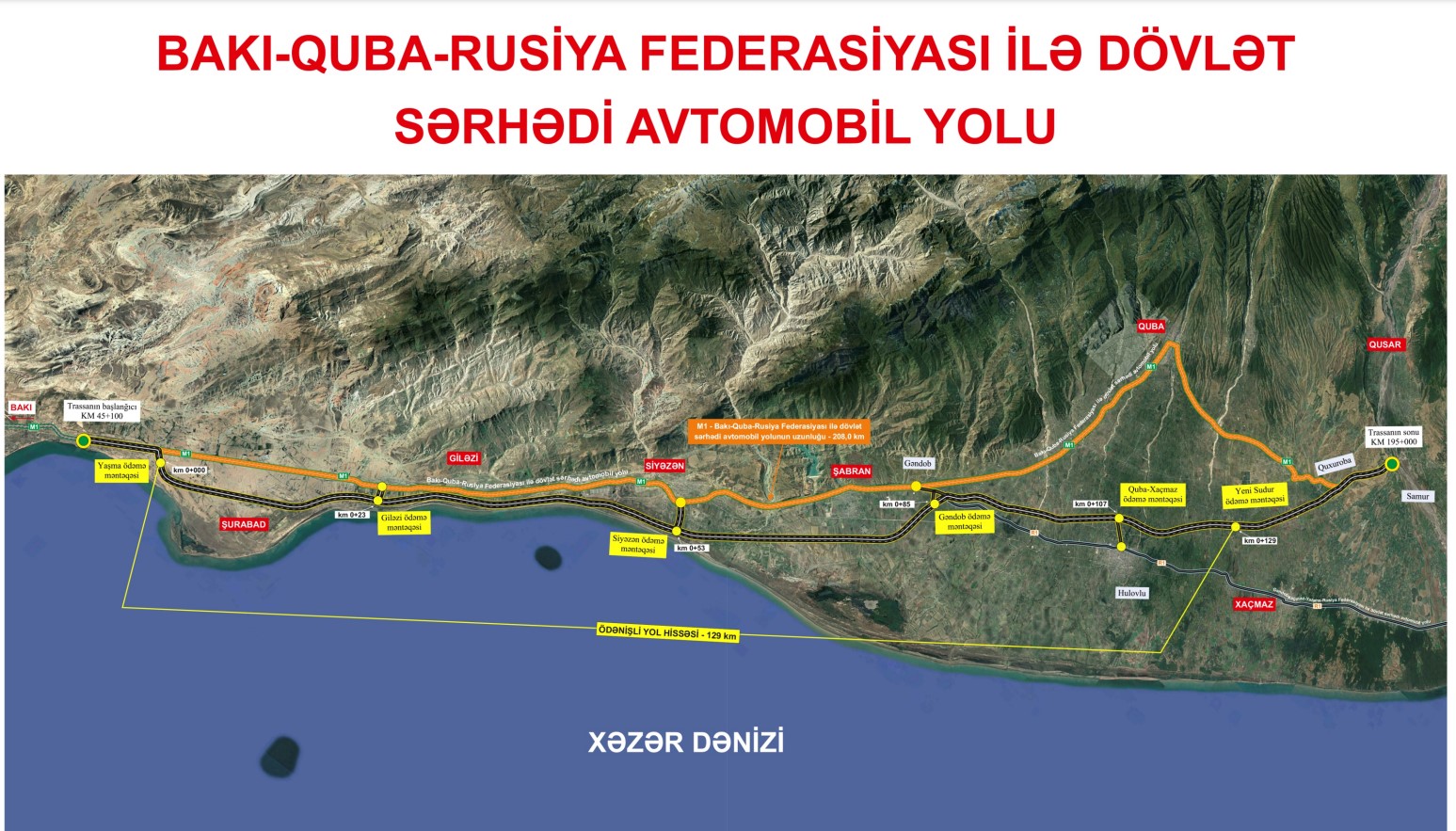 “Bakı–Quba–Rusiya Federasiyası ilə dövlət sərhədi yeni avtomobil yolunun tikintisi ilə bağlı tədbirlər haqqında” Azərbaycan Respublikası Prezidentinin Sərəncamına əsasən H.Z.Tağıyev qəsəbəsindən başlayaraq tikilən yeni 150 kilometrlik avtomobil yolunun 129 kilometr hissəsi ödənişli yol kimi müəyyən edilib.