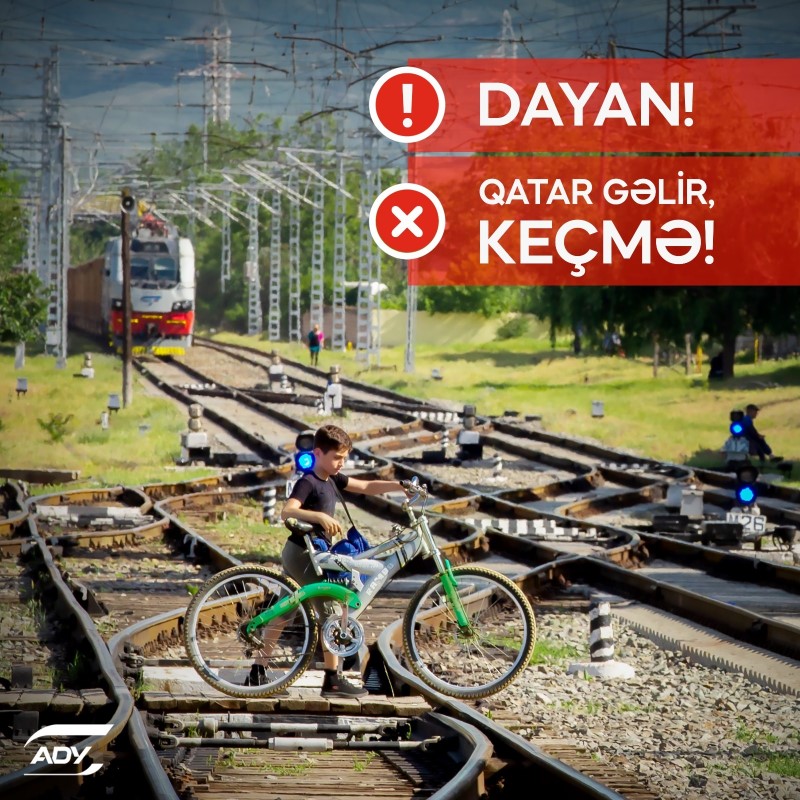 ADY piyadalara çağırış edir: dəmir yolu xətlərini yalnız müəyyən edilmiş yerlərdən keçmək şərtdir.ADY valideynlərə çağırış edir: qaydalara əməl etməklə övladlarınıza nümunə olun!