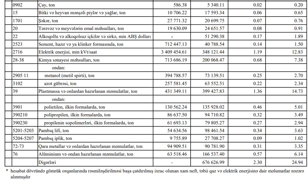 Təbii qaz ixracının dəyəri isə 14 milyard 653 milyon 418 min dollardan 12 milyard 271 milyon 972 min dollara düşüb (2 milyard 381 milyon 446 min dollar və ya 16,3% azalıb).