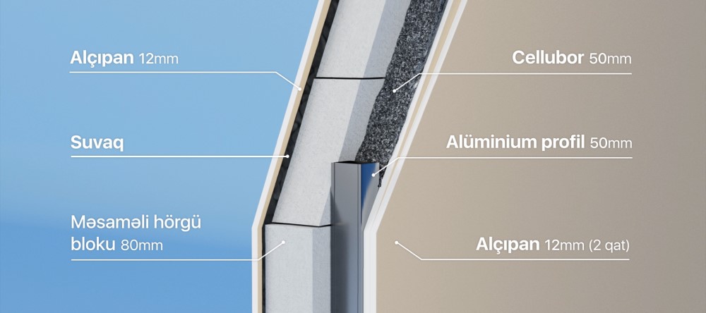 “City Garden Narimanov”, “Park Yasamal”, “Highland Residence”, “SkyHome”, “Park Əcəmi”, “Central Park”, “Park Xırdalan”, “Sumqayıt 10-cu mikrorayon” layihələrinin inşası davam edən binalarında bu yeni sistemi tətbiq edirlir. Yeni izolyasiya sistemində divarların quruluşu “alçıpan - məsaməli hörgü bloku – cellubor – 2 qat alçıpan” şəkilindədir və həm mənzillərarası, həm də mənzildaxili arakəsmə divarlara tətbiq edilir.