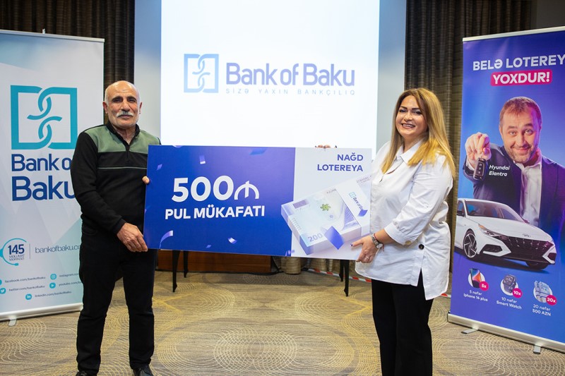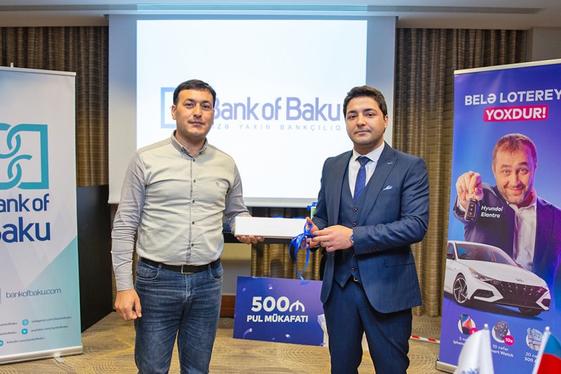 Belə ki, 02-31 oktyabr tarixlərində keçirilən lotereyada “Bank of Baku”dan 50.000 AZN-dək krediti min. 11.5 %-lə əldə edən, “Bolkart” kredit kartı alan və digər şərtlərə cavab verən hər bir müştəri iştirak haqqı əldə etmişdi. Nəticədə lotereyada qalib olan 1 nəfər “Bank of Baku”dan “Hyundai Elantra” avtomobili, 5 nəfər “iPhone 14 Plus”, 10 nəfər “Apple Watch Series 8”, 20 nəfər isə 500 AZN qazanmışdır.