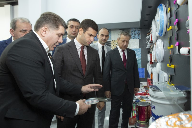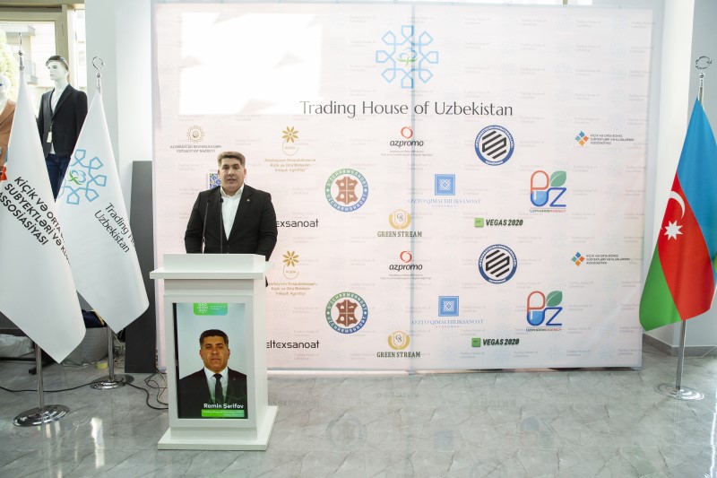 Özbəkistan Ticarət Evinin açılışına dəvət olunan qonaqlar sərgi salonu ilə də tanış olublar. Burada qonaqlara məlumat verilib ki, 10-dan çox sahəni (tikinti, elektronika, tekstil, məişət avadanlıqları, santexnika, dəri məhsulları və s.) əhatə edən məhsullar sərgilənməkdədir.