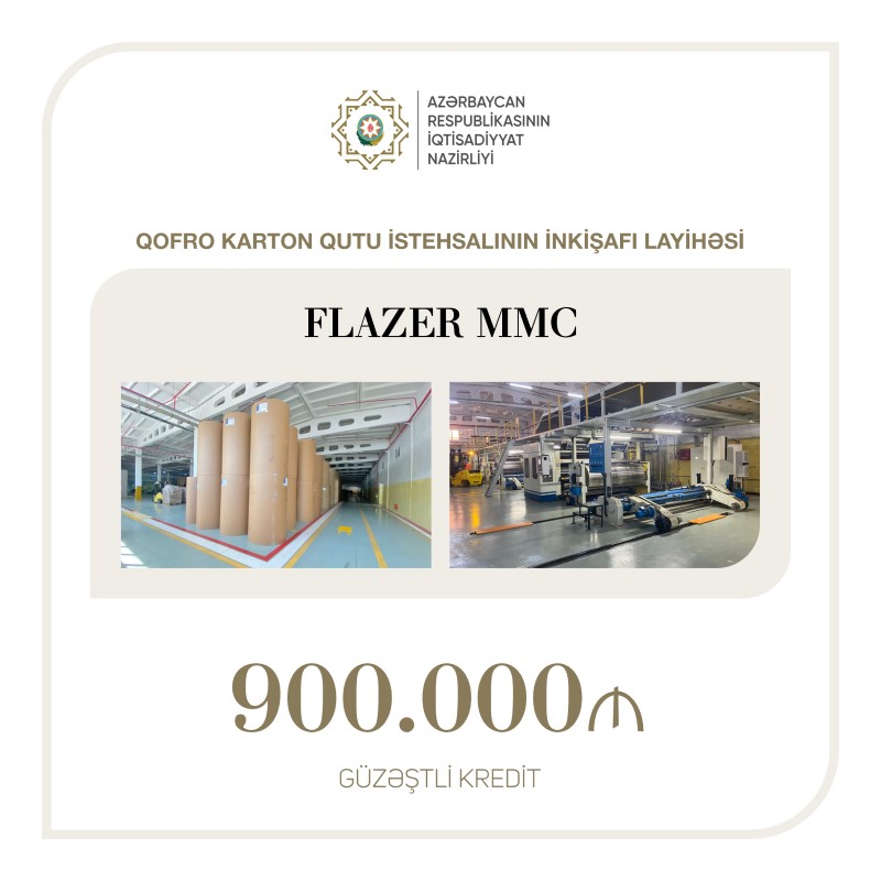 Bu şirkətə qofro karton qutu istehsalı üçün 0,9 milyon manat güzəştli kredit verildi