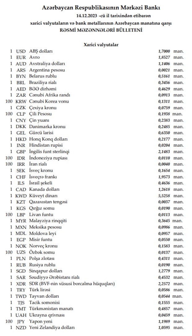 Mərkəzi Bankdan 2026-cı ildə Dollar/Manat məzənnəsi barədə açıqlama