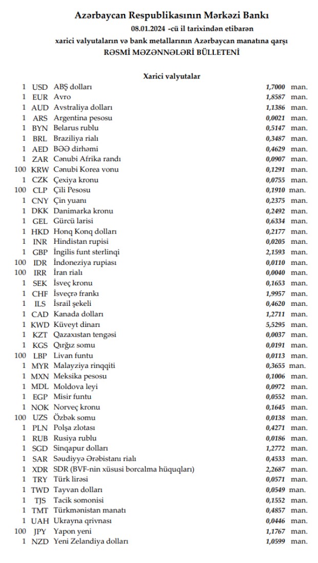 Dolların sabah üçün rəsmi məzənnəsi müəyyən olunub