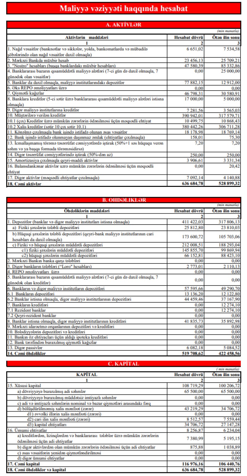 CƏMİ AKTİVLƏRİ 100 MİLYON MANATDAN ÇOX ARTIB