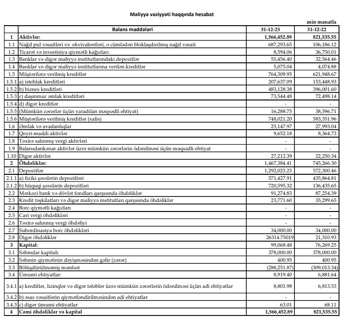 AKTİVLƏRİ 1,5 MİLYARD MANATI AŞIB