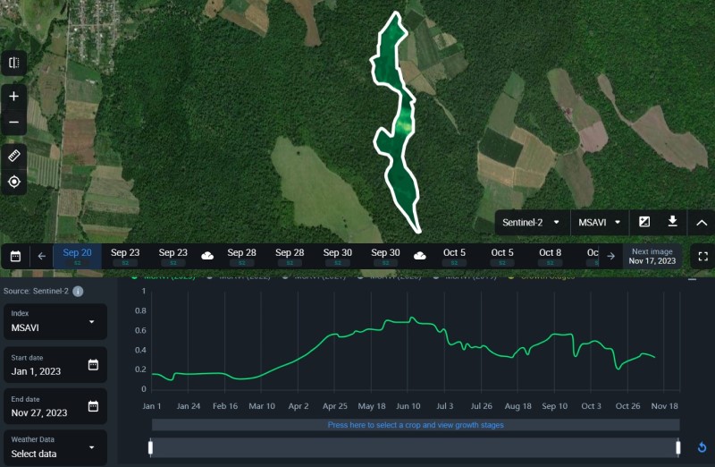 Belə ki, Sustainera Solutions tərəfindən təklif edilən EOSDA Əkinə Nəzarət və Monitorinq (EOSDA Crop Monitoring) xidməti Azərbaycanda istənilən əkin sahəsinin xüsusiyyətlərinə uyğun peyk görüntülərindən istifadə edərək əkin sahəsinin müxtəlif indeksləri üzrə, real vaxt şəraitində məlumatların alınmasına şərait yaradaraq, toxum dövründən məhsulun toplanılması mərhələsinə qədər nəzarət etməyə imkan verir.