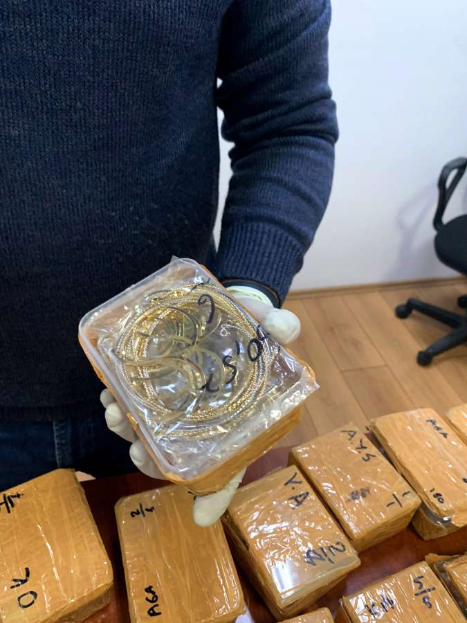 Qeyd olunan zibil və salfetka qablarına keçirilən baxış zamanı 31 ədəd bağlamada, ümumi çəkisi 8 kiloqram 400 qram olan qızıl-zinət əşyaları aşkar edilib.