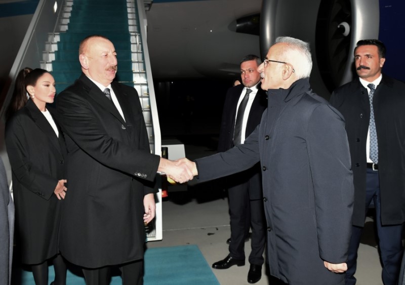 Marja.az xəbər verir ki, Ankaranın Esenboğa hava limanında dövlətimizin başçısını və birinci xanım Mehriban Əliyevanı Türkiyənin nəqliyyat və infrastruktur naziri Abdulkadir Uraloğlu və digər rəsmi şəxslər qarşıladılar.