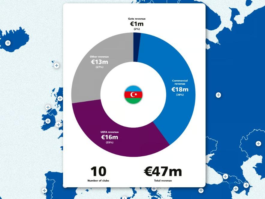 16 milyon avronu (33 faiz) UEFA təmsilçilərimizə verib. Digər gəlirlər 13 milyon avro (27 faiz), bilet satışından qazanc isə 1 milyon avro (2 faiz) göstərilib.