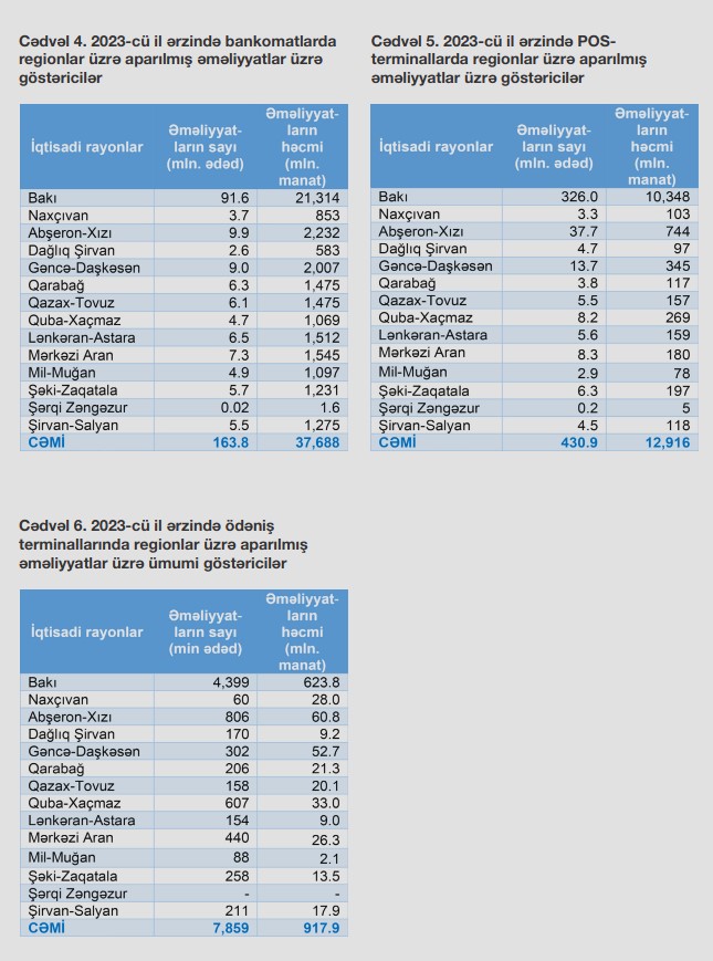 Qeyd edilib ki, 2023-cü il ərzində ölkə üzrə bankomatların sayında 1.4%, regionlarda yerləşən bankomatların sayında isə 0.9% artım müşahidə edilmişdir.
