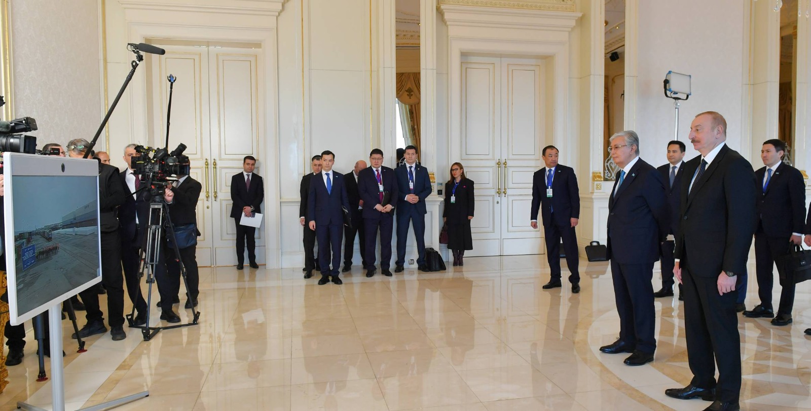 “Azərbaycan Dəmir Yolları” QSC-nin sədri Rövşən Rüstəmov və “Qazaxıstan Dəmir Yolları” SC-nin (KTZ) sədri Nurlan Sauranbayev hər iki ölkənin dövlət başçılarının iştirakı ilə Orta Dəhliz üzərindən Çin–Qazaxıstan–Azərbaycan istiqamətində hərəkət edən konteyner qatarının Bakıya çatdırılması münasibətilə təşkil olunmuş telekörpüyə qatılıblar.