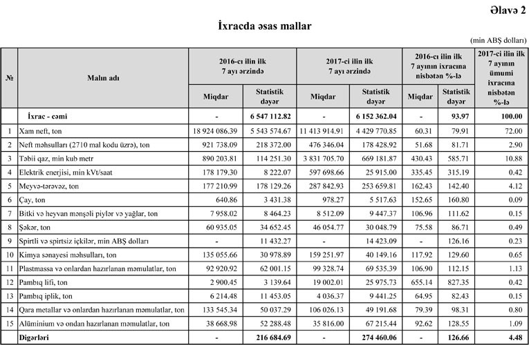 Azərbaycanın ən çox ixrac və idxal etdiyi mallar