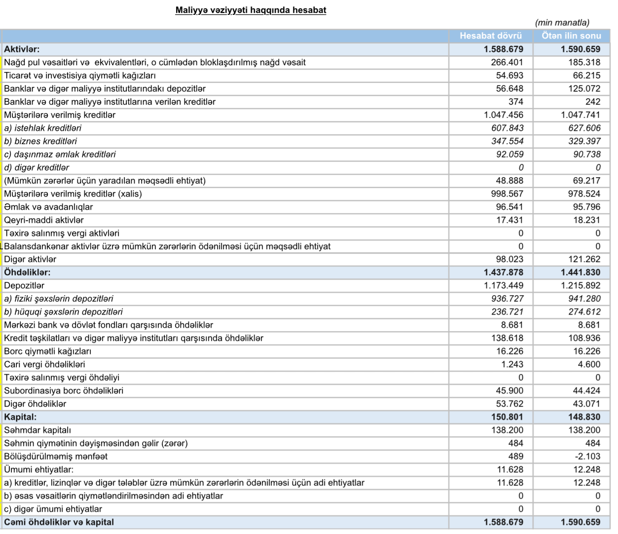 Bu barədə Marja.az Bankın maliyyə göstəricilərinə istinadən xəbər verir.