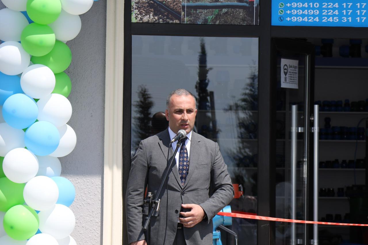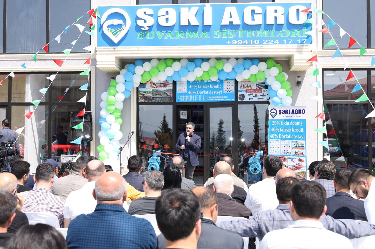 "SHEKI AGRO" MMC-nin təsisçisi Xanoğlan Ramazanov mağazada dünyanın tanınmış şirkətlərinin istehsalı olan damcılama, yağmurlama, avtomatik suvarma və ağıllı gübrələmə sistemlərinin satışda yer aldığını vurğulayıb. O, əlavə edib ki, fermerlər suvarma sistemlərində 20 faiz ilkin ödəniş etməklə Aqrar Kredit və İnkişaf Agentliyinin (AKİA) tədbiq etdiyi alış məbləğinin 40 %-i miqdarında dövlət subsidiyası və geri qalan 40 % -i miqdarında isə faizsiz kreditdən yararlana bilərlər.