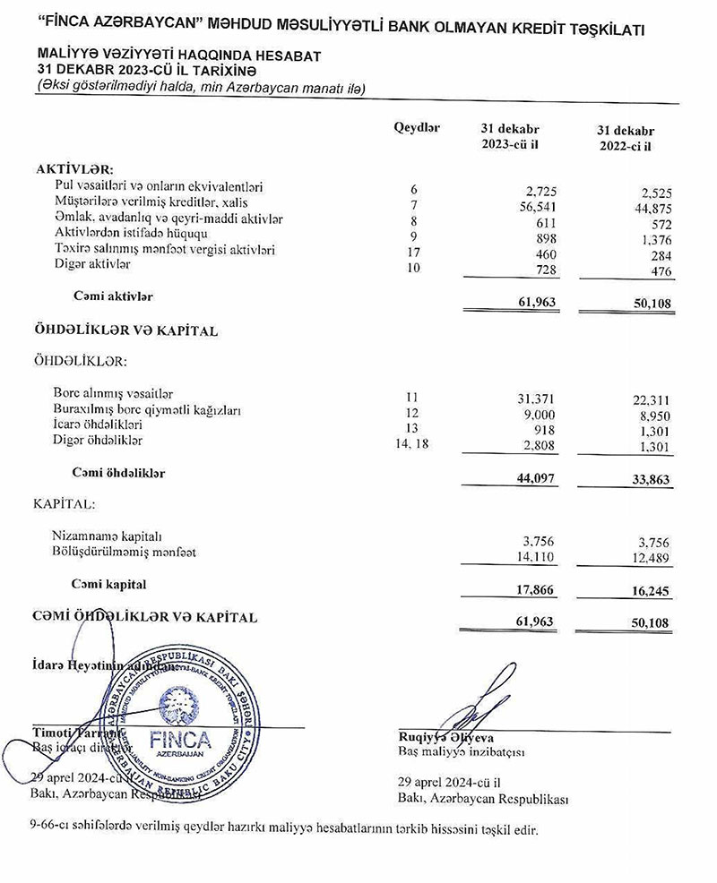 Marja.az xəbər verir ki, "Finca Azərbaycan"ın faiz gəlirləri 2022-ci ildə 11 milyon 854 min manat ikən, 2023-cü ildə 17 milyon 713 min manata yüksəlib.