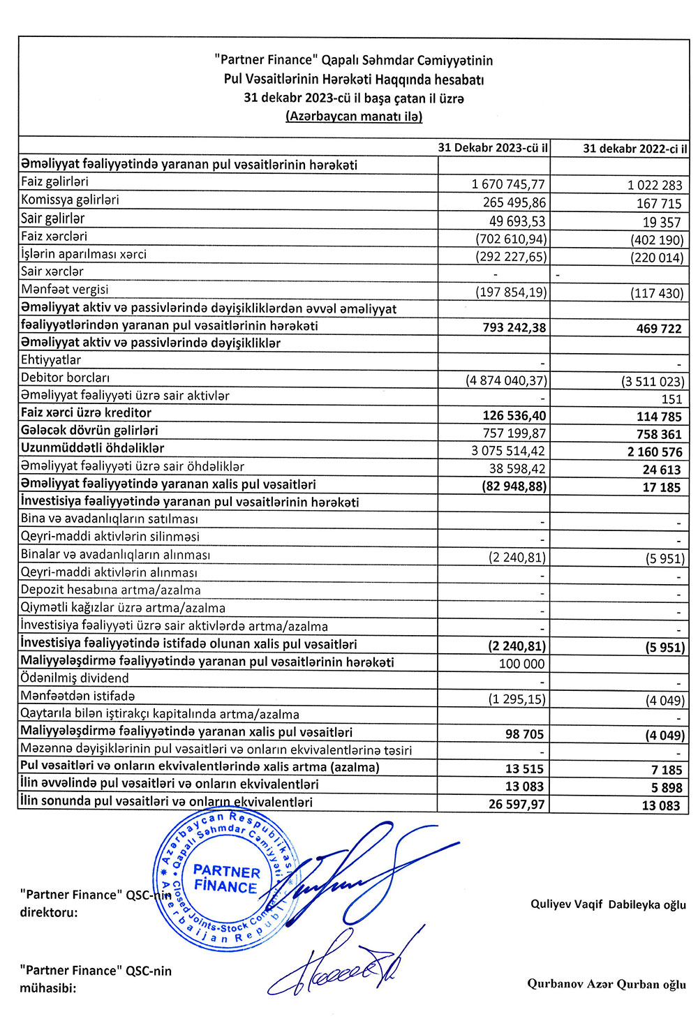 2023-cü ildə "Partner Fiпапсе"ın lizinq portfeli 60,5% və ya 4 milyon 874 min manat artaraq 12 milyon 930 min manata çatıb.