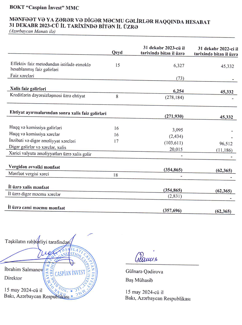 "BOKT Caspian İnvest" MMC 2023-cü ili 354 min 865 manat xalis zərər ilə başa vurub. Təşkilat 2022-ci ili 62 min 365 manat xalis zərər ilə bağlamışdı. Beləliklə, ötəni il "BOKT Caspian İnvest"in xalis zərəri 5,7 dəfə artıb.