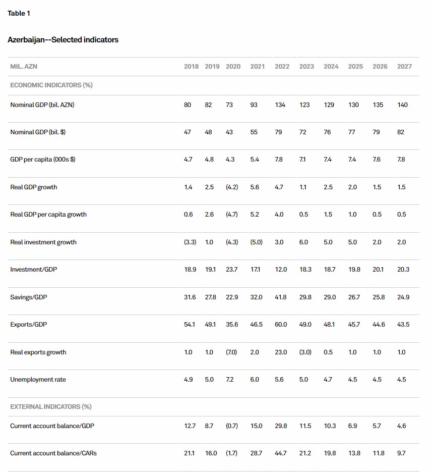 Azerbaijan will also retain an average general government net asset position of around 50% of GDP through 2027.