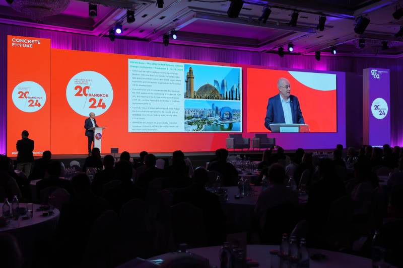 (®) Dünyanın aparıcı sement və beton istehsalı şirkətlərinin rəhbərləri və qlobal liderlər “Xalis sıfır emissiya” ilə gələcəyə doğru birgə təşəbbüslərin müzakirəsi üçün 3-7 iyun tarixləri arasında Banqkokda keçirilən Qlobal Sement və Beton Assosiasiyası 2024 konfransında bir araya gəliblər. Tədbirdə həmçinin bir sıra ölkələrin dövlət rəsmiləri də iştirak edərək, dayanıqlı inkişaf öhdəlikləri barədə çıxışlar ediblər. Tədbirin proqramına Qlobal Sement və Beton Assosiasiyasının üzvlərinin assosiasiyanın “2050 Xalis Sıfır Yol Xəritəsi” ilə uyğunlaşdırılmış xalis sıfır missiyalarının həyata keçirilməsinə dair strateji müzakirələri də daxil edilib.