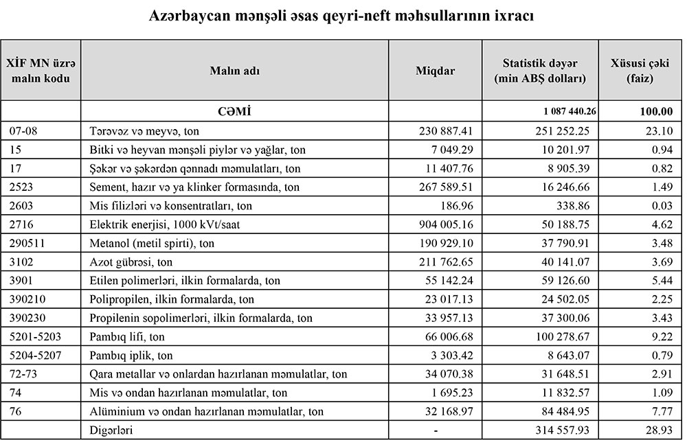 Azərbaycanın ən çox ixrac və idxal etdiyi mallar - YENİ SİYAHI
