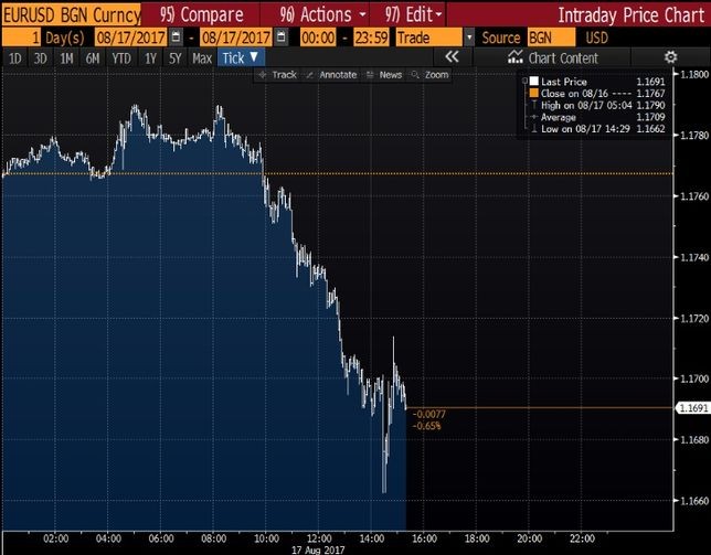 Avro/dollar məzənnəsi, 27 İyuldan bu yana gəldiyi ən aşağı səviyyə olan 1.1662-ni görməsinin ardından 1.1700 səviyyəsi ətrafında tarazlıq tapıb.