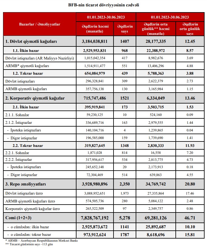 Maliyyə Nazirliyi 2023-cü ilin birinci yarısında dövlət istiqrazlarının yerləşdirilməsi yolu ilə 1 milyard 15 milyon 42 min manat cəlb etmişdi.