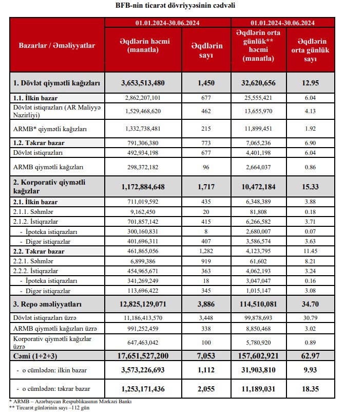 Maliyyə Nazirliyi 2024-cü ilin birinci yarısında (yanvar-iyun) dövlət istiqrazlarının yerləşdirilməsi yolu ilə 1 milyard 529 milyon 469 min manat cəlb edib.