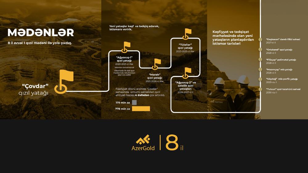 Qeyd edilib ki. bununla da “Çovdar” və cinahlardakı yataqlar üzrə ümumi satılabilən qızıl ehtiyatı bazasının 4 dəfədən çox artırılmasına nail olunub.