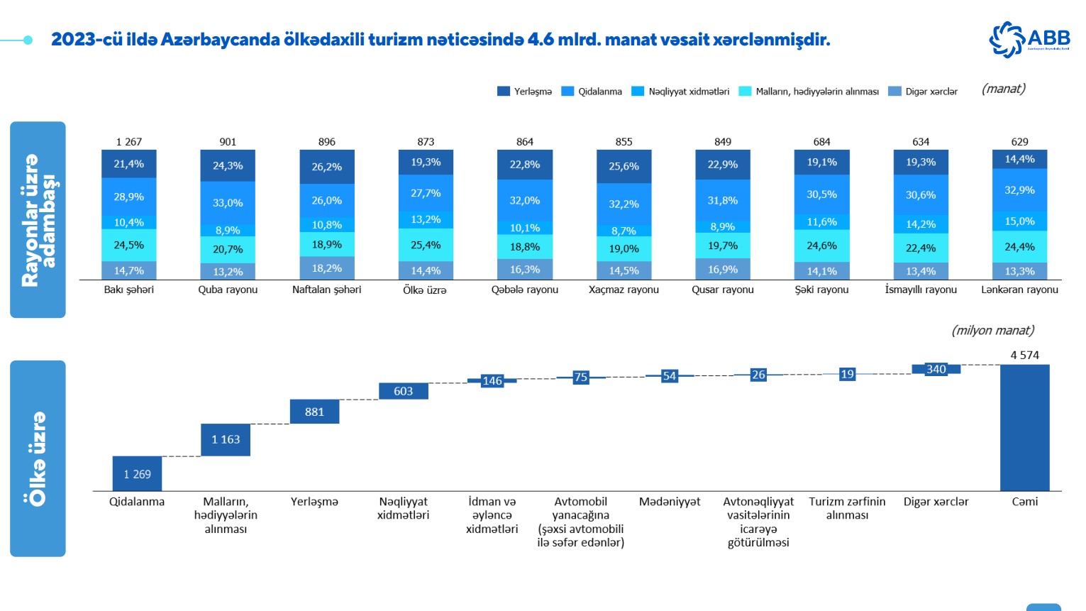 2023-cü ildə Azərbaycanda ölkədaxili turizm nəticəsində 4.6 milyard manat vəsait xərclənmişdir.