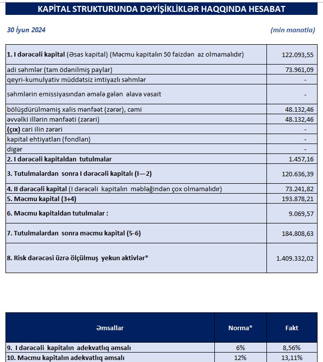 “Bank Respublika” ASC 2024-cü ilin 1-ci yarısını (yanvar-iyun) 26 milyon 264 min manat xalis mənfəət ilə başa vurub. Bank ötən ilin eyni dövrünü 17 milyon 587 min manat xalis mənfəət ilə bağlamışdı. Beləliklə, “Bank Respublika”nın xalis mənfəəti 2024-cü ilin ilk 6 ayında 2023-cü ilin eyni dövrü ilə müqayisədə 8 milyon 677 min manat və ya 49,3% artıb.
