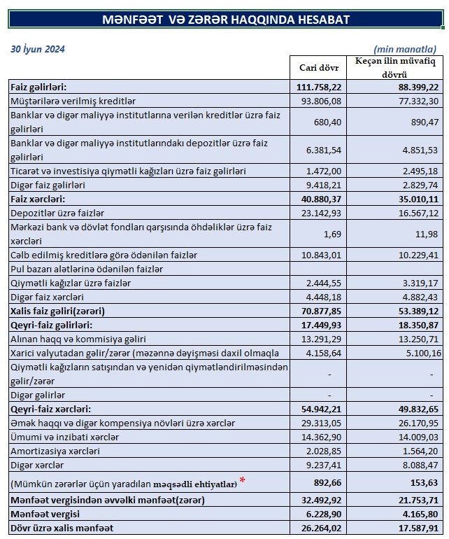 “Bank Respublika”nın xalis mənfəəti 50%-ə yaxın artıb