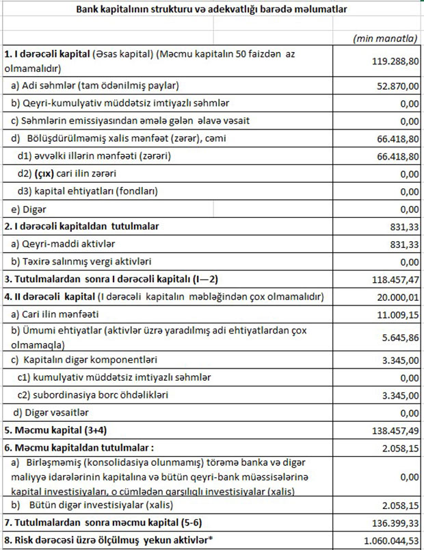 MƏCMU KAPİTALI 100 MİLYONDAN ÇOX OLAN BANKLARDAN BİRİ OLARAQ QALIR