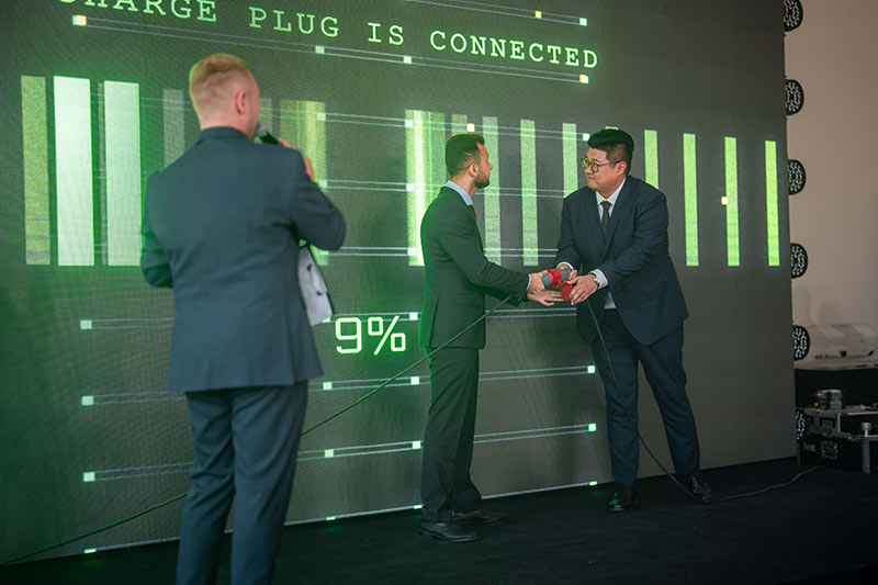 Rəsmi açılış mərasimində elektrik avtomobilin şarj cihazları birləşdirilərək salonun açılışı elan edilib və bu, Azərbaycanın elektrik mobilliyində yeni bir dövrün başlanğıcını simvollaşdırıb. Qonaqlar tanınmış müğənninin ifası ilə gecənin zövqünü çıxardılar.