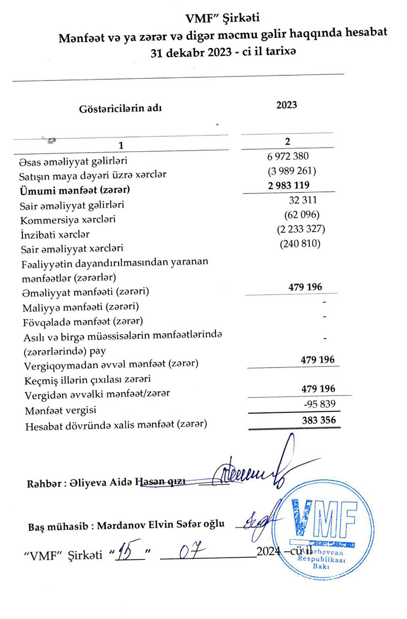 "VMF" şirkətinin xalis mənfəəti azalıb