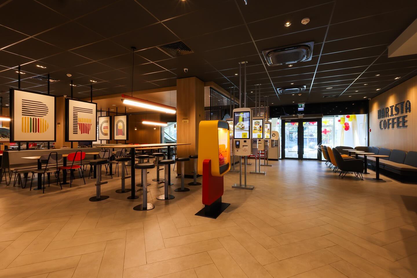 Olduqca geniş sahədə gözəl və komfortlu interyer, McCafe, masa arxası xidmət və Wolt vasitəsilə çatdırılma xidmətləri burada təqdim olunub.