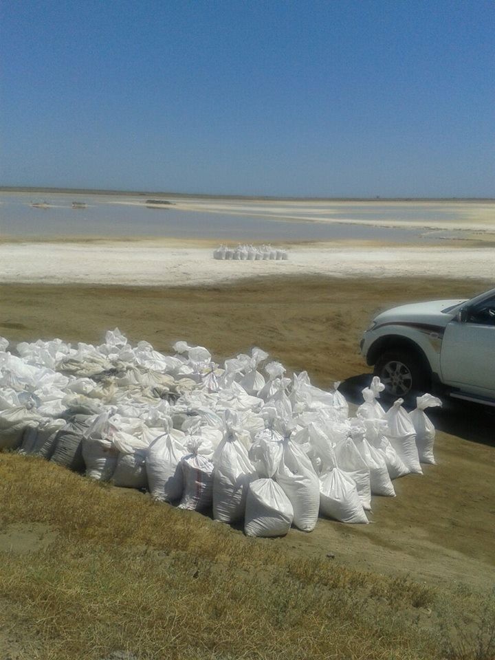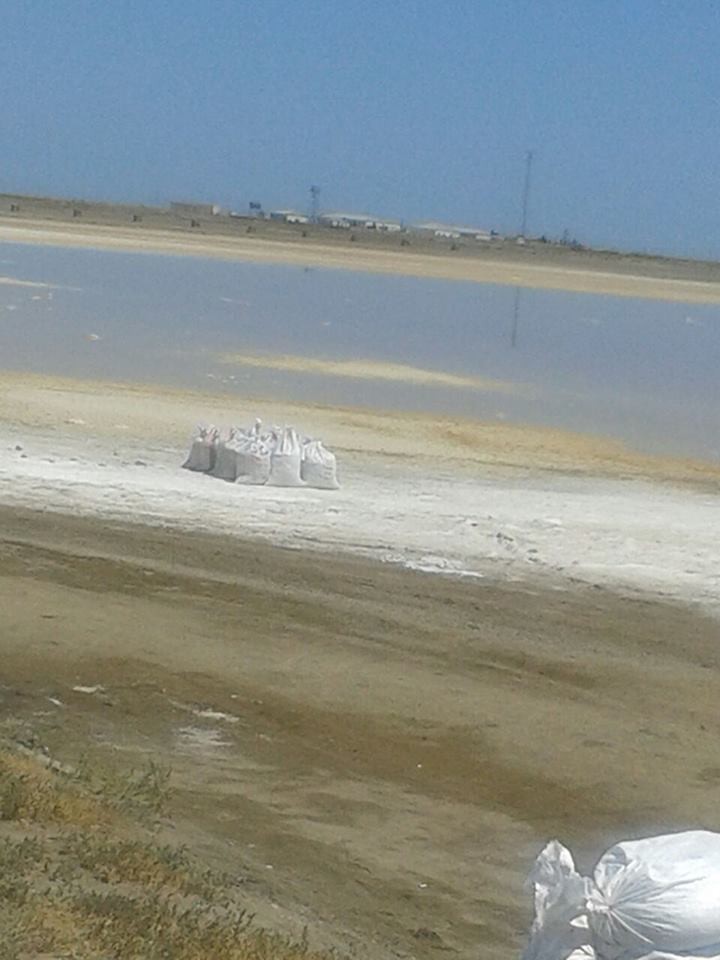 Neftçala rayonunda yerləşən duz gölündən duz kisələrə yığlaraq satışa göndərilir.