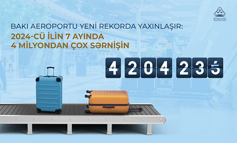 Heydər Əliyev Beynəlxalq Aeroportunun Mətbuat xidmətinin yaydığı məlumatda bildirilir ki, 2024-cü ilin iyul ayında hava limanı 6171 uçuşda 815 mindən çox sərnişinə xidmət göstərib ki, bu da ötən ilin iyul ayı ilə müqayisədə 23% çoxdur. Bu dövrdə bu rəqəm 663 min nəfər təşkil etmişdir.