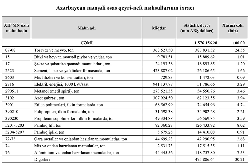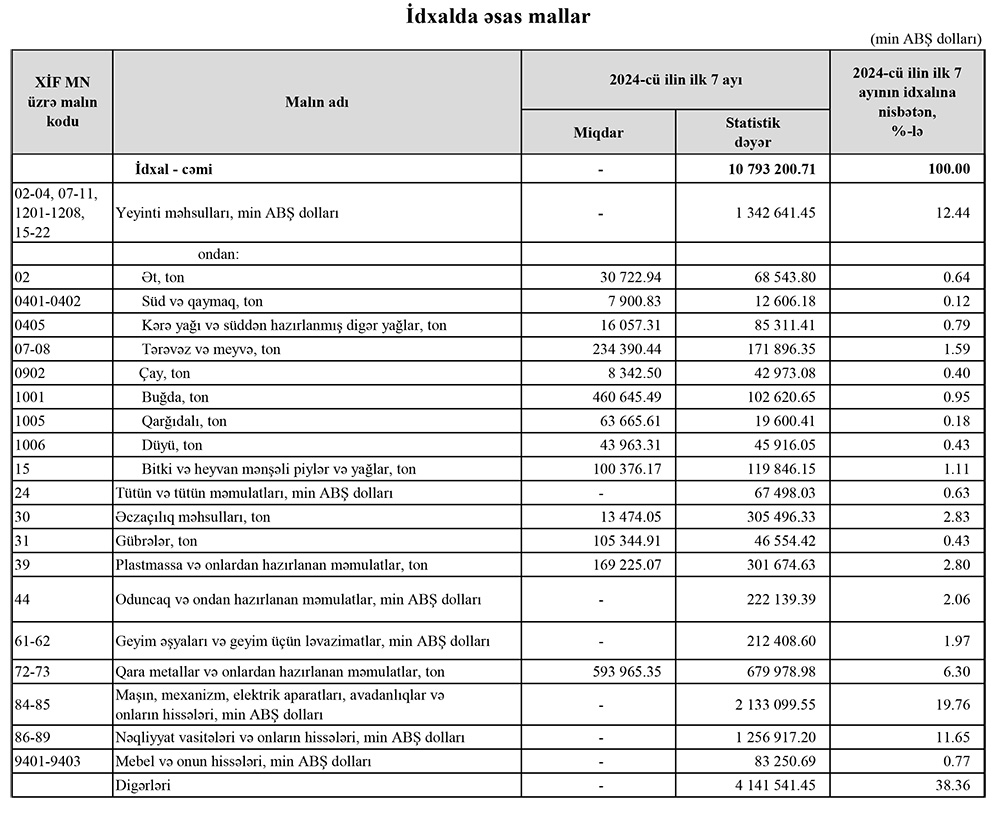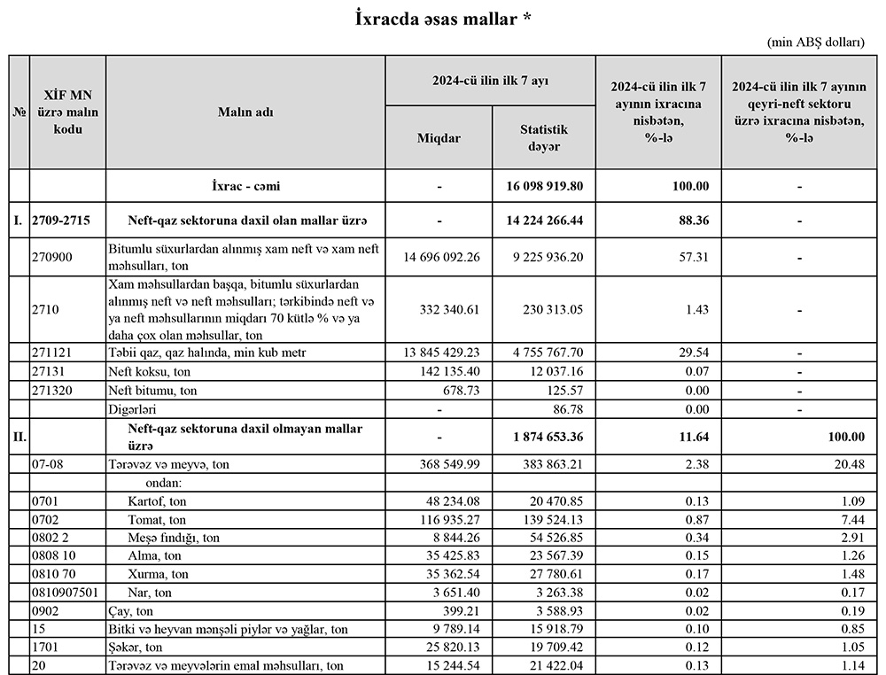 2024-cü ilin yanvar-iyul aylarında (7 ayda) Azərbaycanın ən çox ixrac və idxal etdiyi mallar.