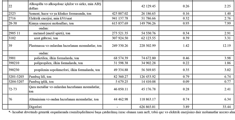 Azərbaycanın ən çox ixrac və idxal etdiyi mallar - YENİ SİYAHILAR