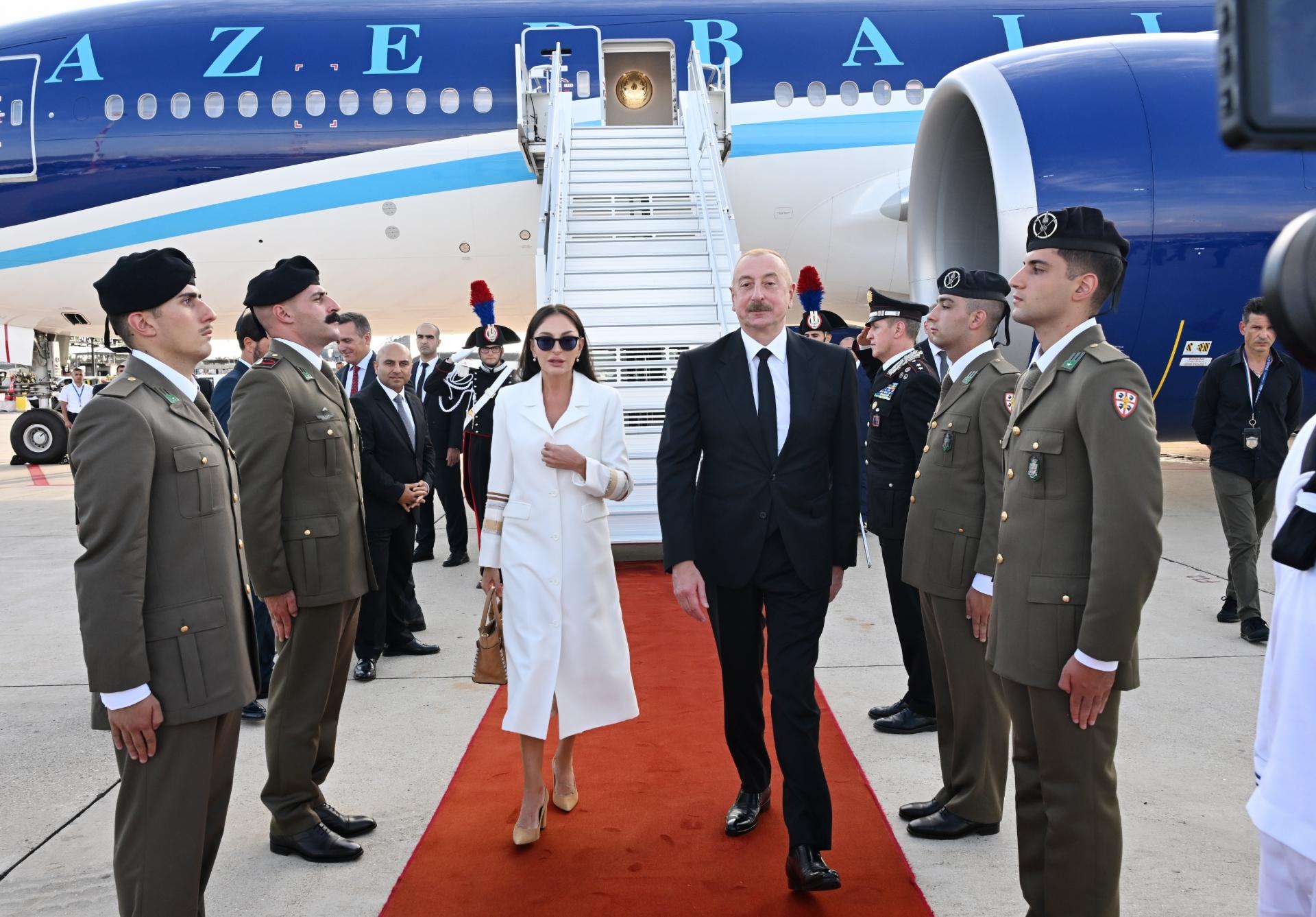 Prezident İlham Əliyevi və birinci xanım Mehriban Əliyevanı İtaliyanın rəsmi şəxsləri qarşıladılar.