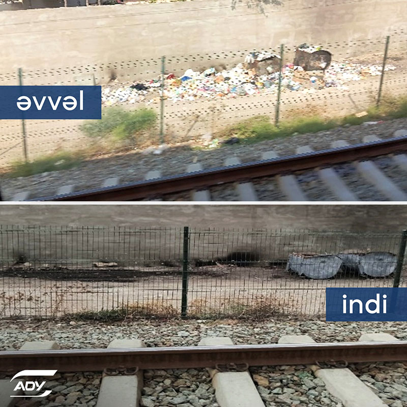 Təmizlik işləri çərçivəsində Sabunçu rayonunun Zabrat qəsəbəsi və Kürdəxanı kəndi ərazisində dəmir yolları və onlara yaxın ərazilər müxtəlif növ məişət tullantılarından təmizlənib və nəticədə həm dəmir yolu infrastrukturunun, həm də ətraf ərazilərin ekoloji vəziyyəti yaxşılaşdırılıb.